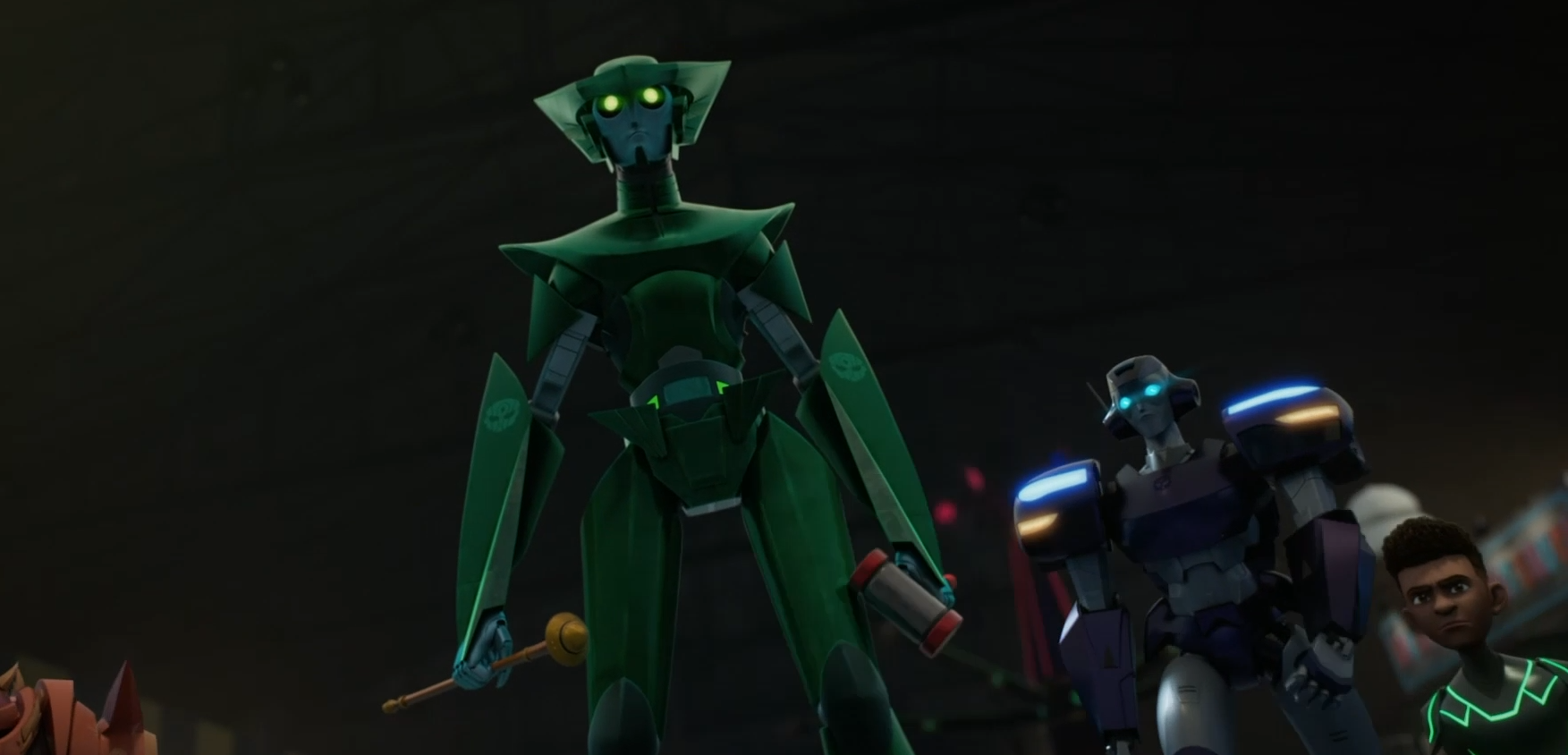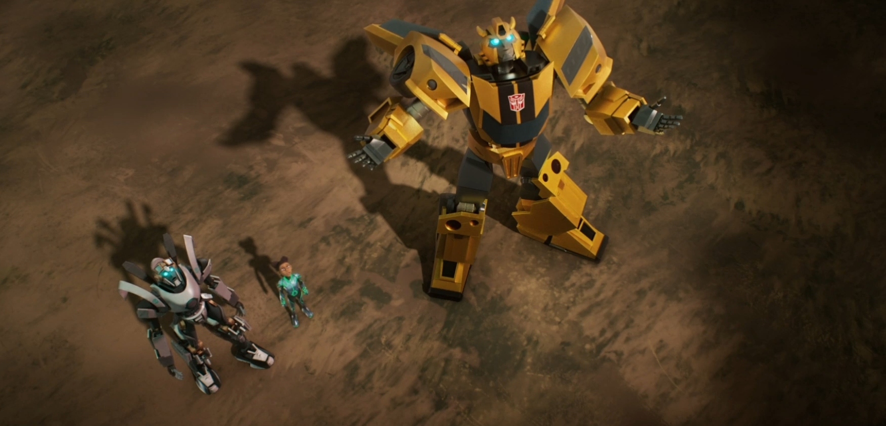 О фильме: Спустя много лет после окончания гражданской войны между автоботами и десептиконами семья Мальто переезжает из Филадельфии в небольшой город Уитвики, штат Пенсильвания. Там молодые Робби и Мо Мальто становятся свидетелями рождения новой породы земных трансформеров, называемых Террансами, которые эмоционально привязываются к ним через специальные кибер-перчатки на руках. Террансы, принятые в семью и находящиеся под опекой Бамблби, работают с детьми, чтобы защитить их новую жизнь и найти свое место в мире.