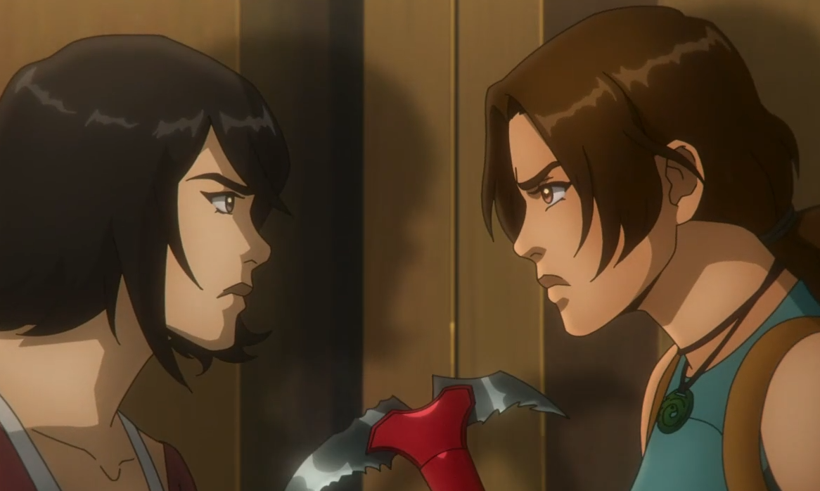 О фильме: Юная Лара Крофт много путешествует по миру, собирая ценные артефакты. Ее наставником является друг отца по имени Конрад Рот. Тандем добирается до древнего храма в Чили. Согласно легенде, внутри спрятана драгоценная шкатулка, но местные жители предупреждают о проклятии. Не послушав их, расхитители направляются к цели, попадая в ловушку. Конрад жертвует собой, чтобы Лара забрала добычу и выбралась. Спустя годы главная героиня выставляет коллекцию артефактов на продажу. Явившаяся на аукцион Джослин Рейес пытается обвинить Крофт в смерти Рота, но защищать хозяйку мероприятия принимается Сэм Нисимура. Другой неприятный инцидент связан с Чарльзом Деверо.
